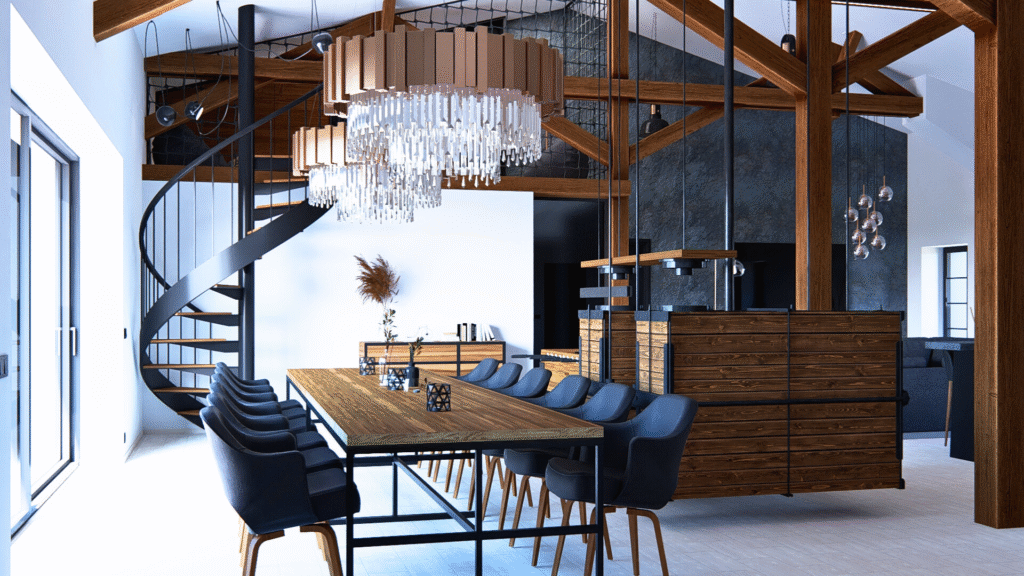 Za hlavními vchodovými dveřmi do objektu se nachází rekonstruovaná chodba s historickým dřevěným schodištěm doplněným o velmi neobvyklé vestavěné liniové LED osvětlení o celkové délce 47 metrů.