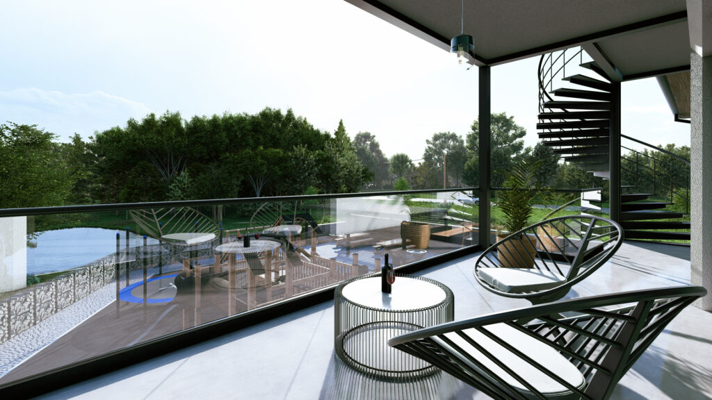 Objekt o zastavěné ploše 39 m² s celkovou podlahovou plochou 46 m², jehož součástí je také mobilní základna pro 16 m² velkou terasu.